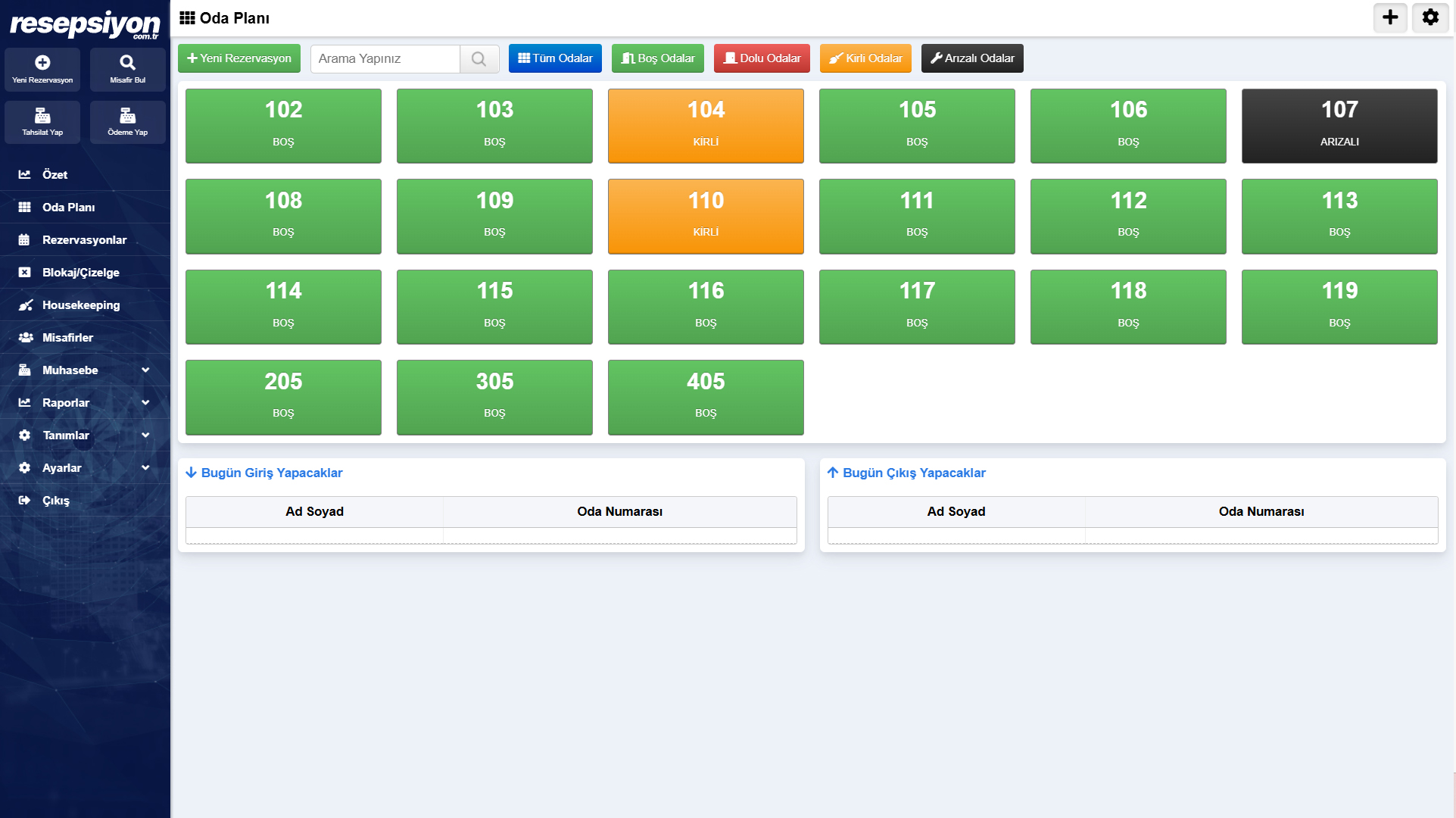 Online rezervasyon, check-in/check-out işlemleri ve müşteri takibi